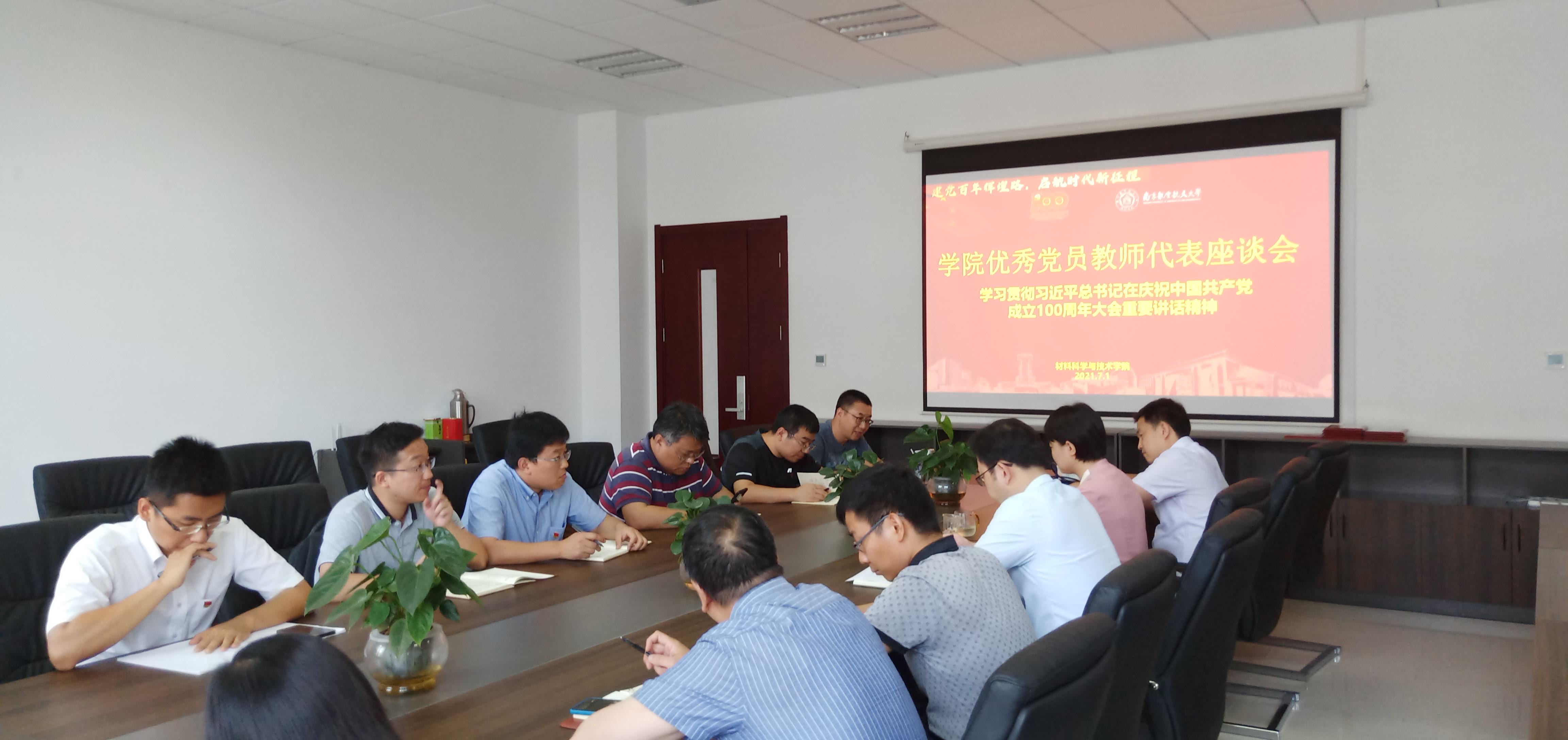 庆祝大会后,91直播 党委召开优秀党员教师代表座谈会,围绕习近平总书记在庆祝中国共产党成立100周年大会上的重要讲话开展了热烈的学习和讨论,91直播 党委书记石勇、党委副书记许赞,91直播 副院长汤晓斌、陶海军参加座谈。