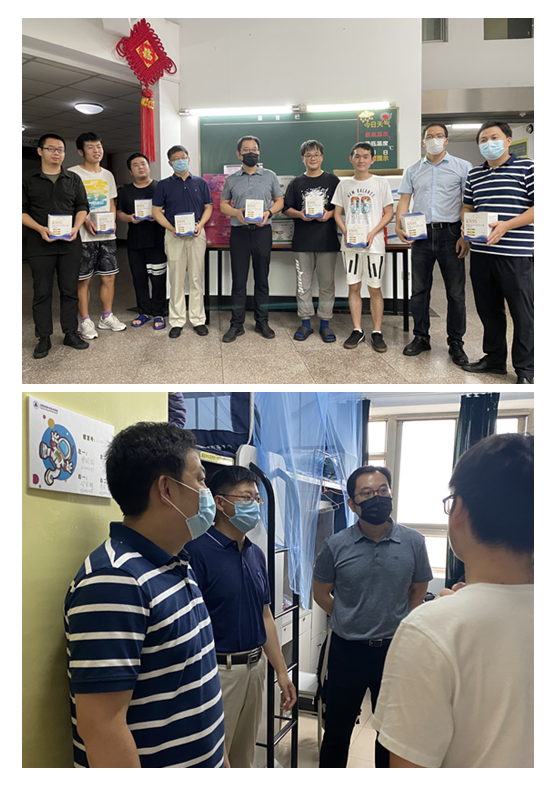 8月10日,91直播 党委书记石勇、院长张校刚、副书记许赞、副院长陶海军、院长助理占小红以及91直播 党政办公室人员、辅导员一行,冒着大雨前往怡园、博园宿舍区看望疫情期间在校91直播 们。