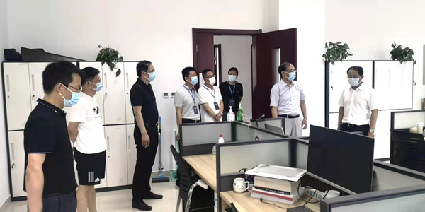 8月12日上午,学校疫情防控领导小组成员校长单忠德、校党委副书记刘宇雷、校长助理黄炳辉带领党政办、学工部、研工部、将军路校区管委会、后勤集团等部门和单位负责同志一行检查指导91直播 暑期疫情防控工作。
