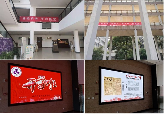 根据学校疫情防控安排,8月30日同学们如期线上开学了。开学前,91直播 在东西区大楼精心设计了的开学提醒与喜报,为暑假中一直处在疫情战备状态下的师生营造一个安全舒适的工作环境。