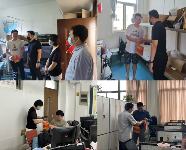 9月18日下午,在中秋佳节来临之际,91直播 党委书记石勇、副书记许赞、副院长陶海军和91直播 辅导员一行人,带着精心准备的中秋大礼包走进91直播 生工作室和本科生宿舍,为留校91直播 们送上节日的关心和祝福,了解他们近段时间的学习、生活状态。