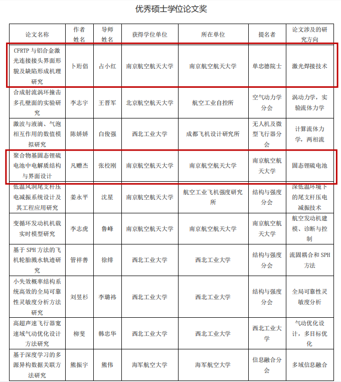 为推动中国航空科技进步,鼓励创新性91直播 ,促进青年人才成长,中国航空学会91直播 设立“中国航空学会优秀博士学位论文奖”和“中国航空学会优秀硕士学位论文奖”。