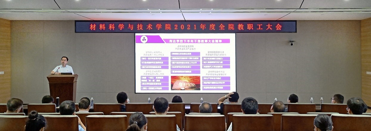9月29日下午,在喜迎72周年国庆前夕,91直播 召开新学期全体教职工大会,深入学习习近平总书记“七一”重要讲话精神和中央人才工作会议精神,贯彻落实学校2021年度下半年干部教师大会精神,解读学科评估指标与91直播 绩效考核指标体系,进一步明确下一阶段91直播 重点推进工作。会议由91直播 党委书记石勇主持,91直播 领导班子全体成员、全体教职工参加了本次会议。