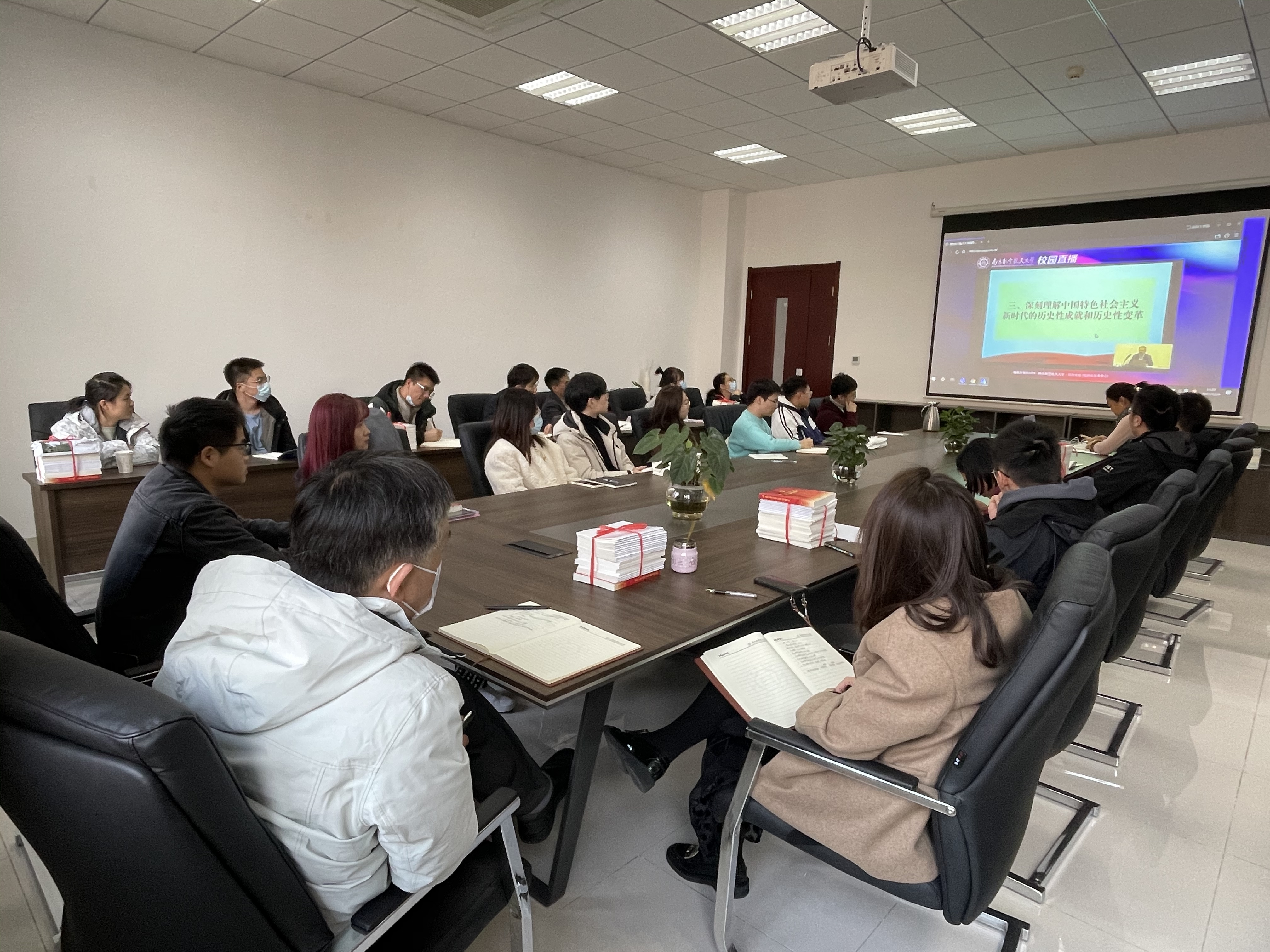 12月9日,91直播 在91直播 东区楼B316会议室集中组织91直播 理论中心组成员、师生党支部委员收看学校举行的学习贯彻党的十九届六中全会精神省委宣讲团报告会。江苏省委宣讲团成员、省社科联党组成员、副主席尚庆飞作报告。会议由校党委书记郑永安主持。
