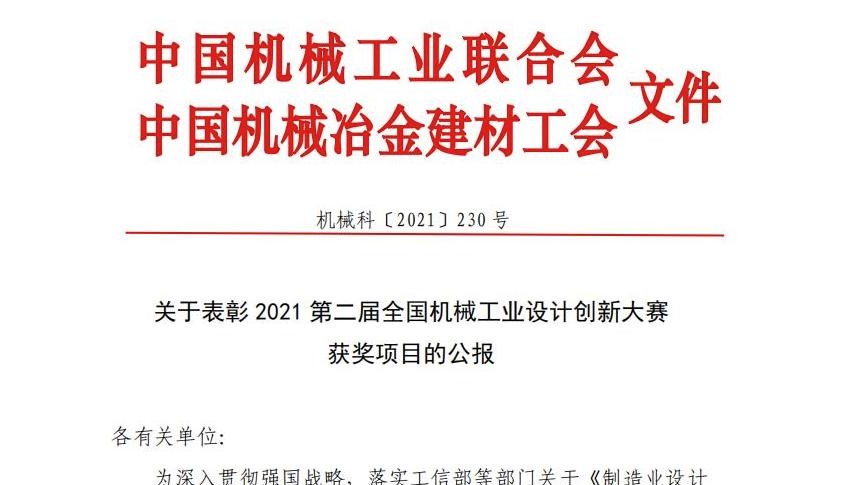 本届大赛以“设计创新、智造未来”为主题,旨在加强行业、企业、院校间的交流合作与人才培养,加强工业设计创新资源整合与产业体系构建,促进机械工业设计水平和能力提升,实现以设计创新助力行业转型升级。经选拔、初赛、决赛,最后经大赛评委会评审、组委会审核认定,共表彰获奖项目220,其中金奖27项、银奖43项。
