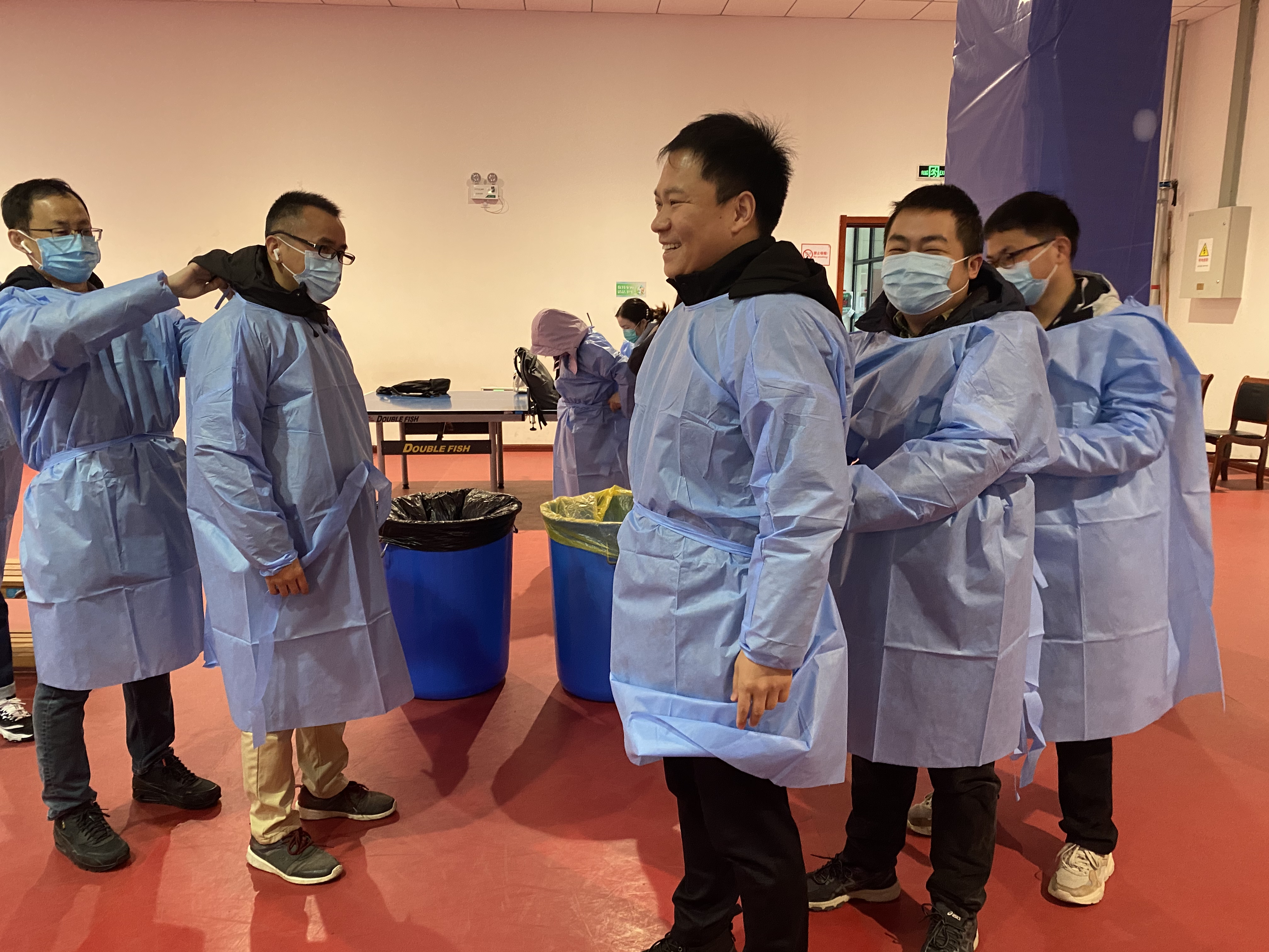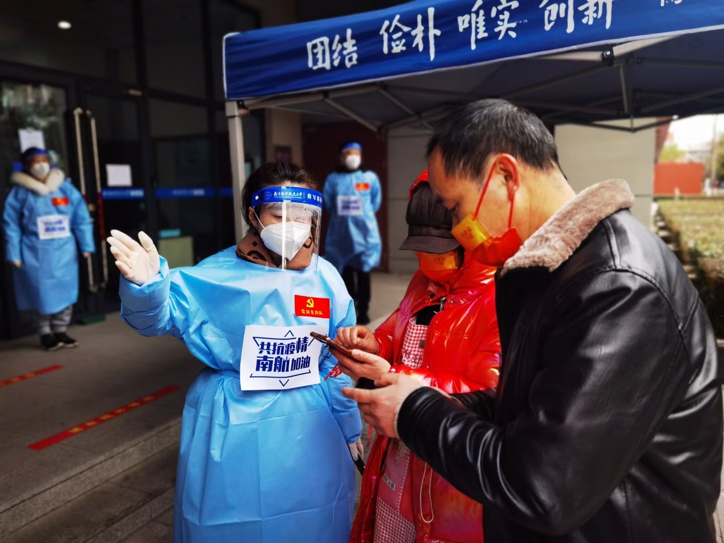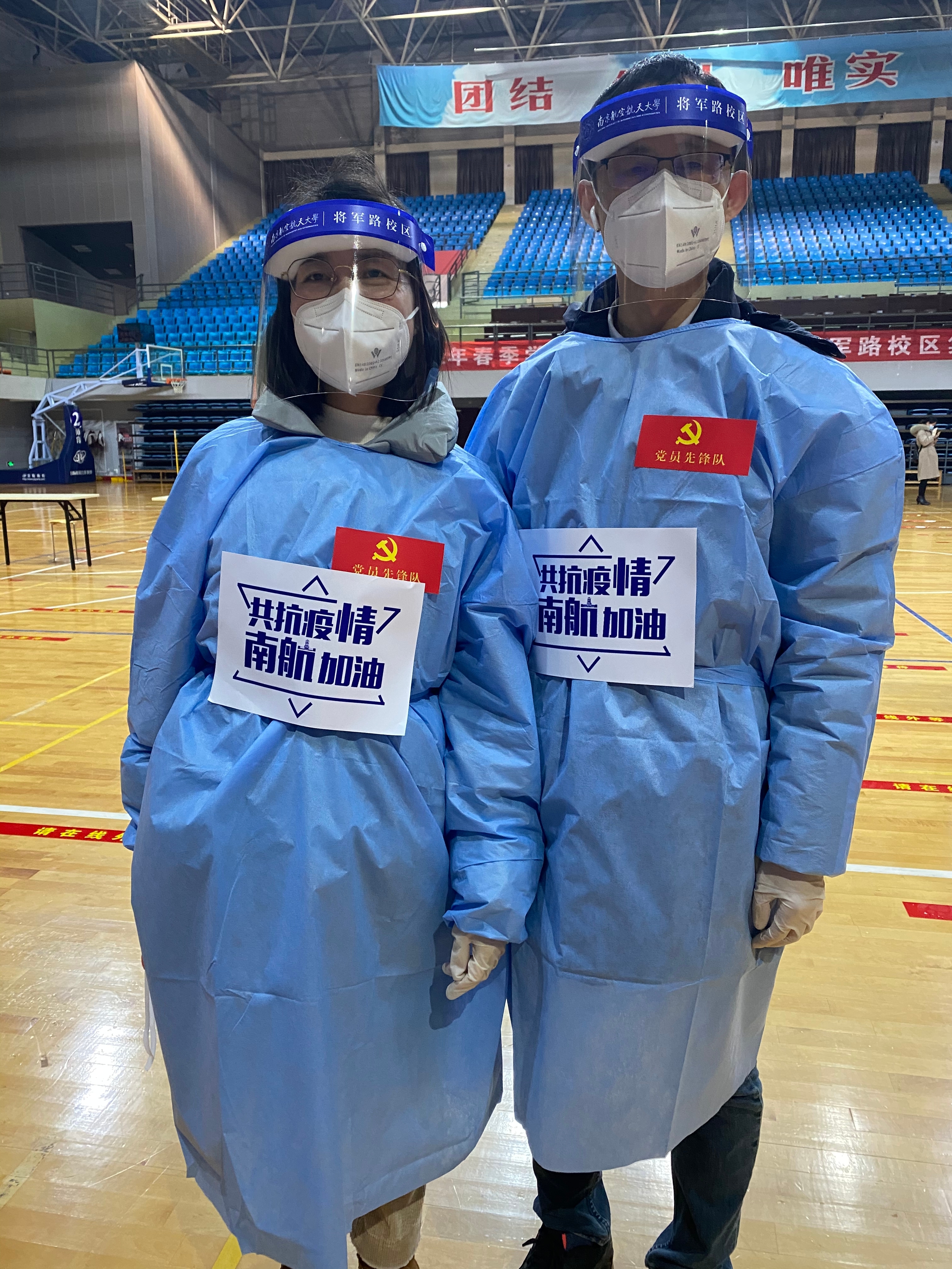 2月18日上午,参加志愿服务的老师们提前抵达体育馆和校门口,在校区管委会工作人员的指导下,穿戴好防护服,各就各位,或是维持秩序,或是引导队伍,或是信息录入,或是物质保障,说的最多的就是“带好口罩,做好个人防护”,“请提前准备好采样码”,做得最多的就是指导帮助一些没有操作过的后勤人员登记信息。蓝色的防护服穿在厚厚的棉服外,志愿者老师们像一只可爱的冰墩墩,亲切地提醒,可爱的模样,让风尘仆仆返校的师生们缓解劳累和压力,寒风中感受家的温暖。志愿者老师们用满腔热忱为返校91直播 安全有序核酸检测保驾护航,用实际行动诠释新时期的“四有”好教师的仁爱之心和责任担当。