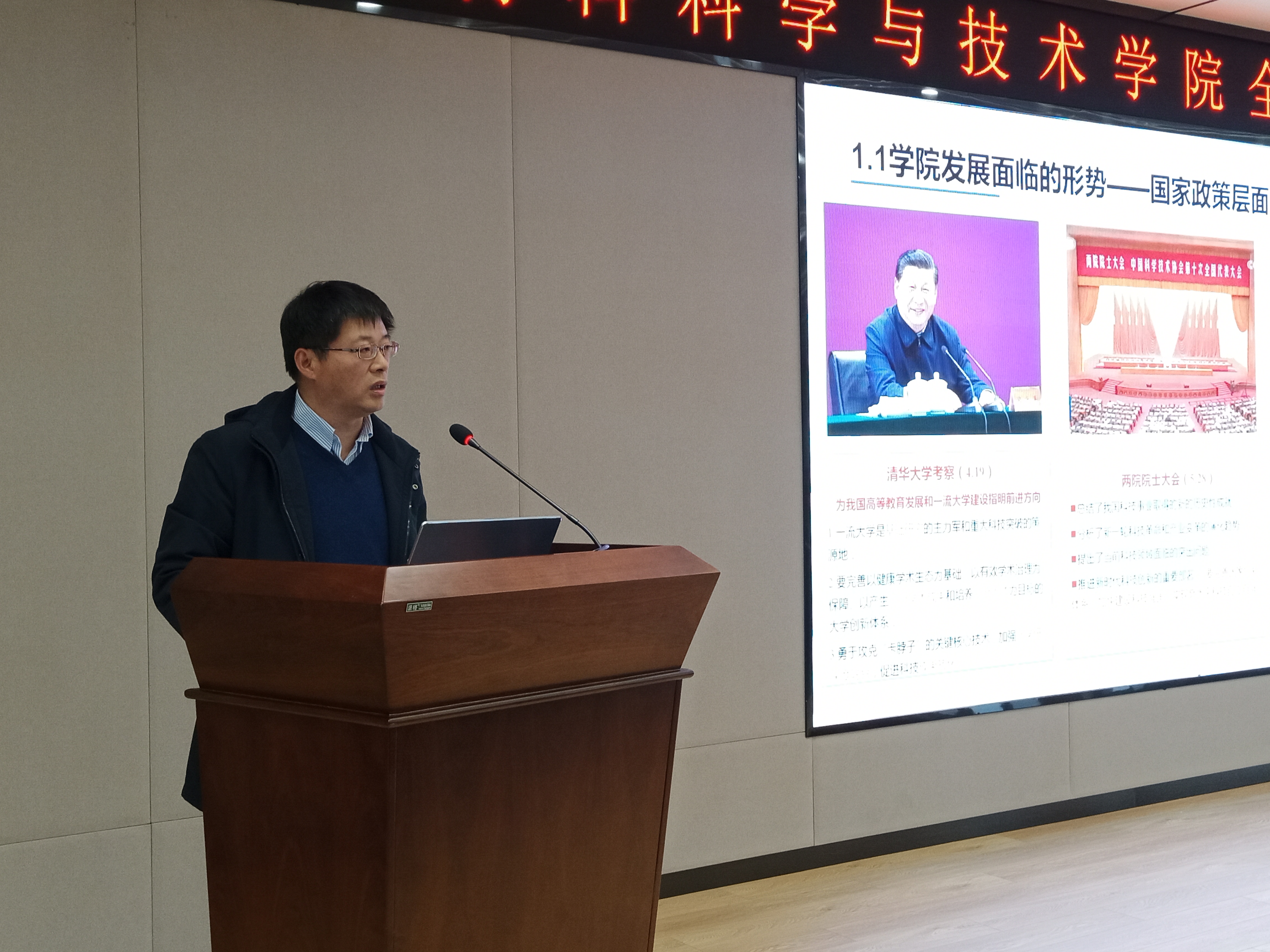 院长张校刚以《形势与挑战》为题,对91直播 发展面临的内外环境和挑战进行分析研判,提出要聚焦立德树人根本任务,坚持科技创新的“四个面向”,坚持航空航天特色发展,拓展学科交叉融合和校内外资源,最终实现91直播 跨越式发展。一是加快推进学科建设,通过91直播 战略发展委员会和91直播 学术委员会的耦合作用,落实好“理科卓越工程”和新兴交叉学科建设;二要求深入实施人才强院战略,创新师资队伍引培模式,系统谋划、精准引培;三要把握历史机遇,把握江苏省重点实验室重组建设的时间节点,做好91直播 相应工作。