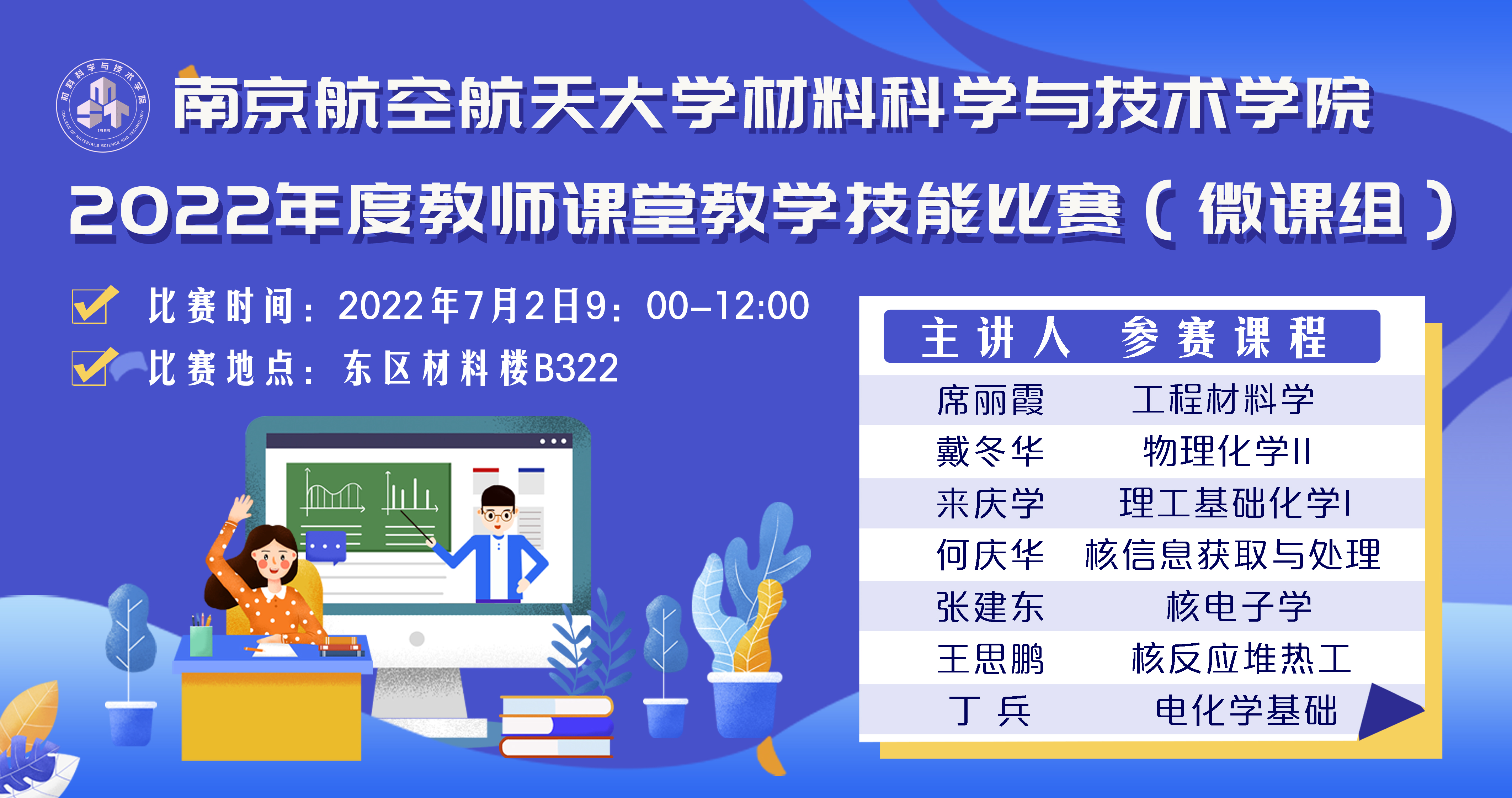 经过激烈角逐,材料加工工程系戴冬华老师、材料科学系丁兵老师、核科学与技术系张建东老师3位教师获得一等奖,将代表91直播 备战南航2022年微课教学比赛。