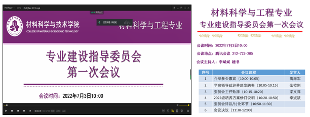 2022年7月3日,材料科学与工程专业新一届专业建设指导委员会召开首次会议,主任委员梁文萍、副主任委员程继贵、委员沈晓冬、储洪强、陈阳、史和生、封小松、朱申敏、陶杰、顾冬冬、陶海军及秘书李斌斌全部参加了本次线上会议。会议由李斌斌主持,91直播 院长张校刚受邀出席。