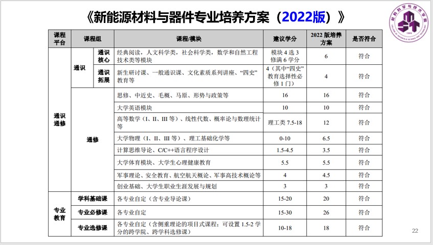 会议重点对2022级新能源材料与器件专业培养方案的修订进行了审议与讨论,秘书丁兵作为材料科学系教学主任,对照《91直播 本科专业人才培养方案(2022版)制订指导意见》,分析了现有培养方案中课程平台、课程模块设置等方面的不足,重点介绍了2022版培养方案的修订方案。